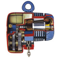 PK型环链电动葫芦是技术成熟的系列产品,使用安全、质量优良、寿命长,效率高,广泛应用于工业、商业、手工业及服务性行业的企业中各种场所,是提高工效、改善劳动条件的理想设备。根据自行刹车原理设计的锥形转子电动机,有普通速、快速和带精起升速度的各种形式。在直齿轮减速器中,第二级传动齿轮上安装有磨擦保险连轴器,使环链电动葫芦免于承受极端的超负荷,高强度耐摩损的钢制链条提升稳定安全。因此,具有非常的安全可靠性。