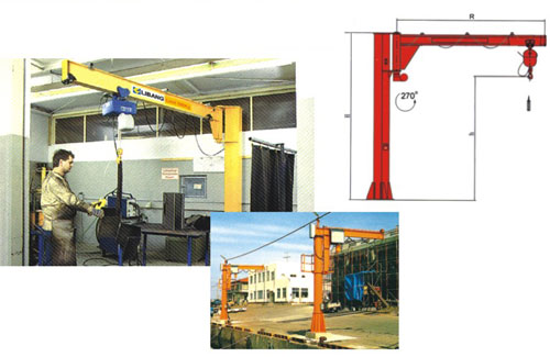 | 定柱式旋臂吊能帮你缩短生产准备和非生产性工作时间,减少不必要的等候。力邦公司旋臂吊规格多、品种全,无论您对起升重量、旋转角度,臂长和功能有什么样的要求,我们都能为您提供解决方案,甚至我们有带双旋臂、伸缩臂等旋臂吊。所有的规格都具有一个共同的优点:自重轻,旋臂长,起重量大,安装、操作、维修简单。它们完全独立,是一种理想的工作岗位起重机,并适用于室外的货场和装卸平台。定柱占地面积小。对于起升净空非常小的情况下也能获得大的起升高度。 |