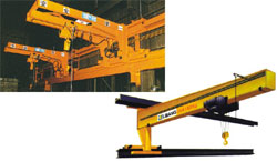 | 壁行式悬臂起重机是我公司在壁柱式旋臂起重机的基础上研制的一种新型物料吊运设备。该机行走道轨安装在厂房的水泥柱或钢柱上,沿着道轨可做纵向运动,同时电动葫芦又可完成沿悬臂的横向运动以及垂直方向的起吊。该机极大的扩展了作业范围,更为有效的利用了厂房空间,对大跨径厂房提供合适的起重机工作区域,使用效果更加理想。 |