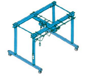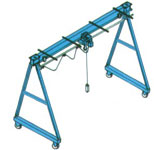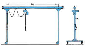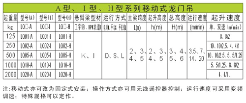 的起重量可达2000公斤,凡是采用悬挂式起重机不可能或不经济的地方都可以方便使用。龙门式起重机可以简单地拆分为几个容易运输的部分,在另一个使用的地方又能很快地装配起来,这一特点在很多场合都有益处。工字钢无轨门式起重机起重量可达2000公斤。